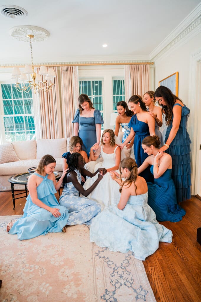 The atmosphere in the bridal suite was joyful and calm. There was laughter, a few happy tears, and a moment that truly moved me: right before portraits, the bridesmaids circled around Anna Kate and prayed over her. It was such a heartfelt, intimate scene, and one I’ll never forget. I’ve been part of many weddings, but the depth of faith and unity on this day was something truly special.