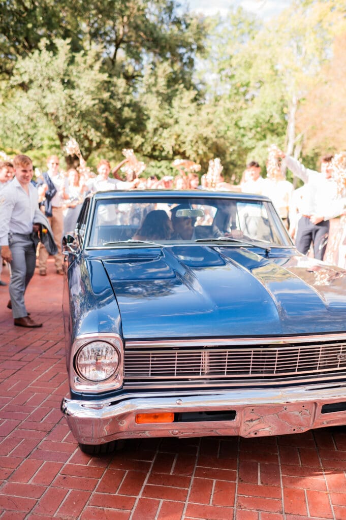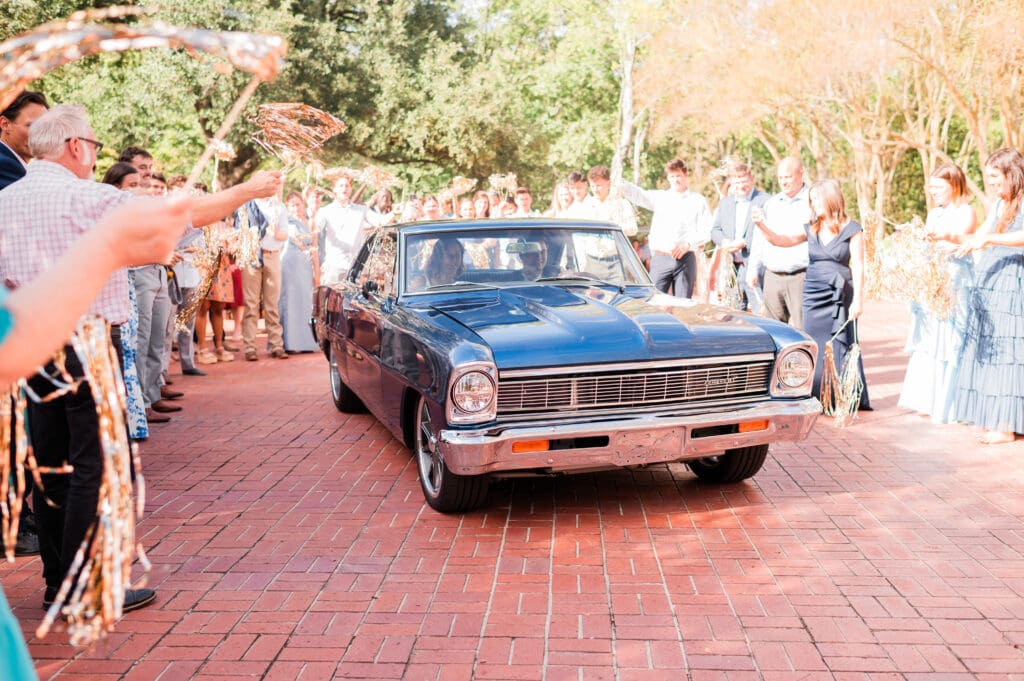 And then because God’s timing truly is perfect the clouds began to gather. Just as the couple stepped into their getaway car after their final dance, the first signs of rain rolled in. The entire day had been shielded, blessed, and beautifully timed.